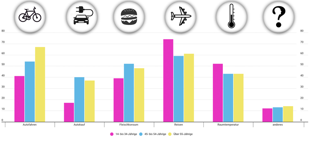 56 Prozent der Befragten gaben an, sie hätten ihr Verhalten beim Autofahren angepasst, im Vorjahr waren es 58 Prozent. 32 Prozent lassen sich beim Autokauf – Elektro- statt Verbrennungsmotor – von der Klima-Debatte beeinflussen.